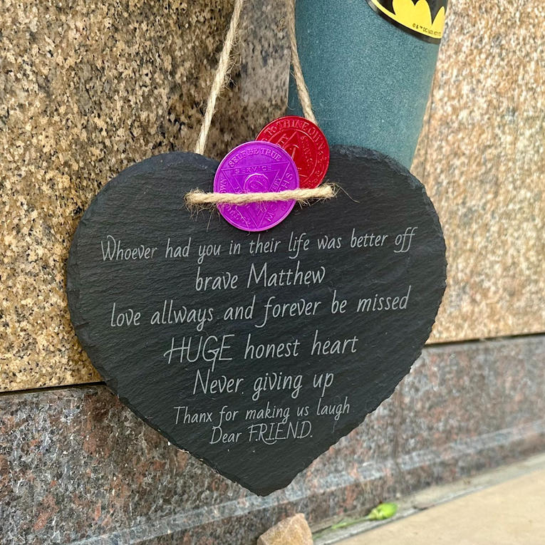 „Кој те имаше во животот беше посреќен. Храбар Метју, ќе ни недостасуваш секогаш и засекогаш. Големо и искрено срце, никогаш не се откажа. Ти благодариме што не насмеа, драг пријателе“, пишуваше на плочата, пренесува Индекс.
