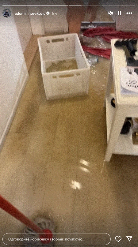 Имено, Раша објави видео на кое покажа дека мебелот им плива во водата додека тој и Гоца ја собирале водата.